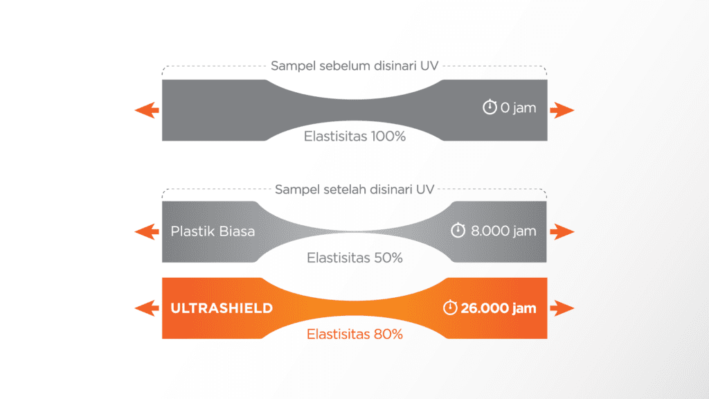 Untuk mengatasi ini, tangki air Penguin menggunakan teknologi Ultrashield UV26 yang dikembangkan bersama spesialis proteksi UV terkemuka dunia. Perlindungan ini tiga kali lebih tinggi dibanding tangki biasa yang hanya UV8. Ini membuat polimer mampu mempertahankan warna, kilau, serta sifat fisiknya meski terpapar cuaca ekstrem.